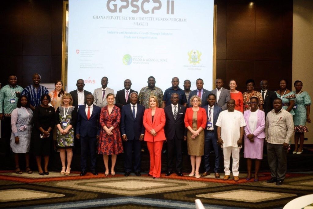 Attended by close to 100 participants, the GPSCP II launch event featured representatives from SECO, the Swiss Ambassador to Ghana, HE Simone Giger, Minister for Trade & Industry, Hon. K.T. Hammond, Deputy Minister for Food & Agriculture, Hon. Yaw Frimpong Addo, CEO of Tree Crops Development Authority, Hon. William Quaittoo and a Director from the Ministry of Local Government, Decentralisation and Rural Development, Mrs. Doris Agyei-Henaku. 👏🏿